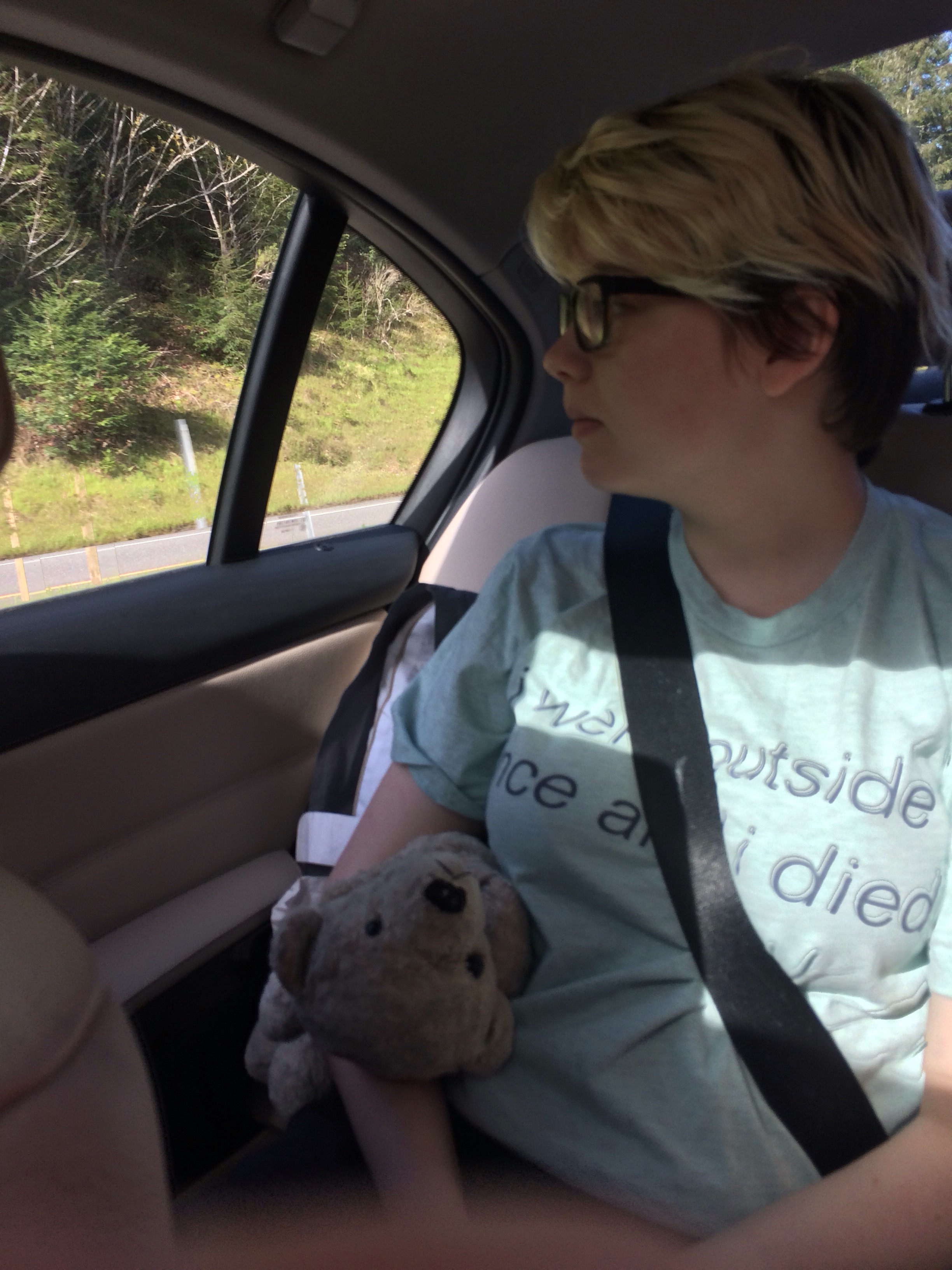 Today was mostly driving. The Girl loves driving! Give her Mom Teddy, some tunes, and some scenery, and she’s happy for hours.