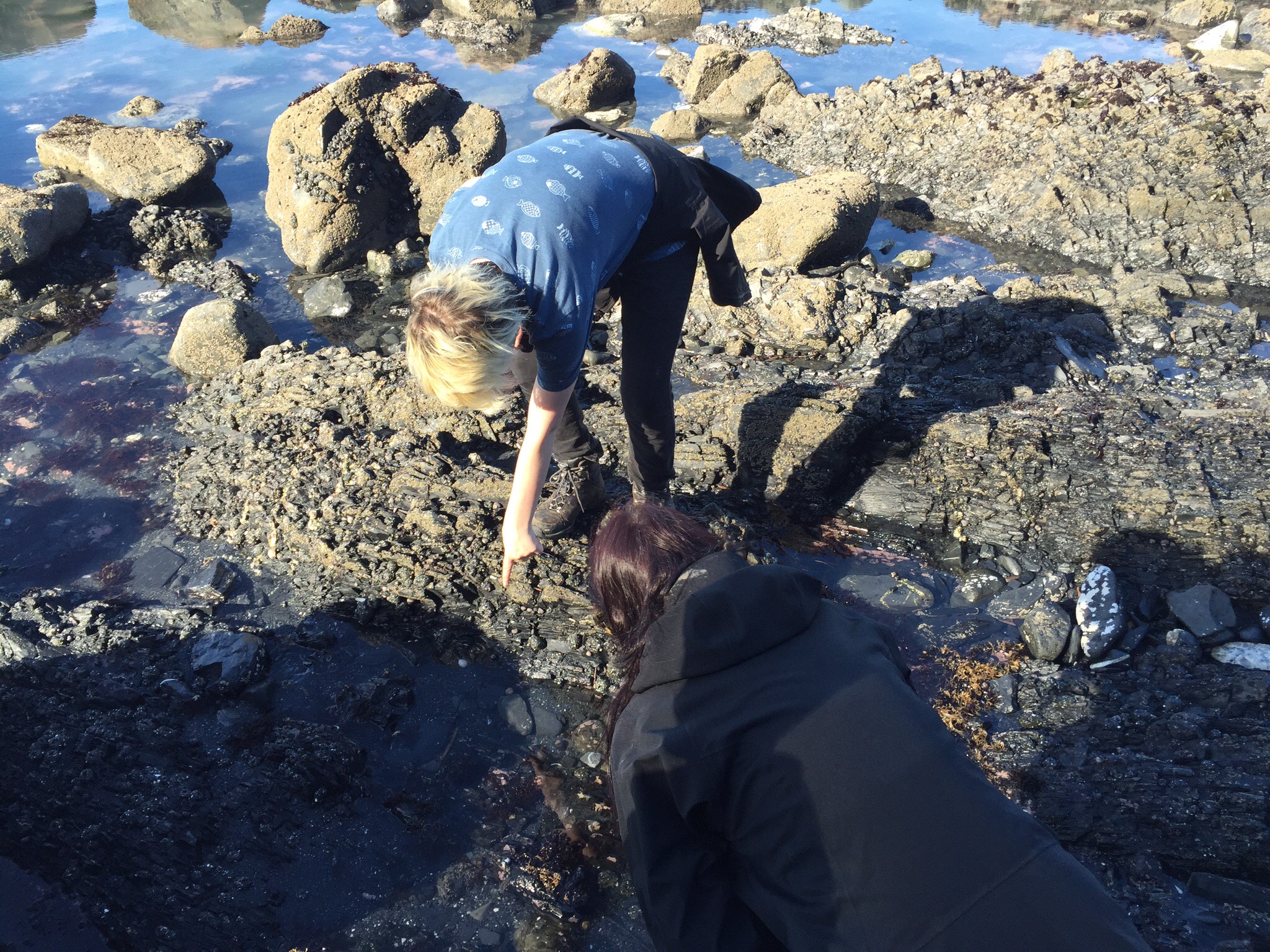 What a beautiful day! It was 18 degrees with sunshine and a light breeze. I read and relaxed on the rocks, looking up every few minutes to make sure there were still three heads out there. I was also ostensibly on “shark watch” because The Girl is convinced she’s a choice morsel.